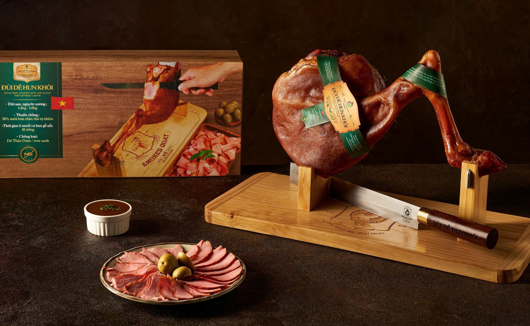 Dê núi tai chuột với đặc điểm thịt thơm ngon không mùi hoi, không mùi khét, thịt săn chắc, ít mỡ, hàm lượng dinh dưỡng cao. Sản phẩm đùi dê hun khói được hun khói gỗ sồi trong thời gian từ 12 – 18 tiếng. Thịt dê có màu hồng, vị đậm đà, vị thơm đặc trung của thịt dê núi và hương thơm nhẹ của các loại thảo mộc sẽ là món quà vô cùng ý nghĩa để biếu tặng trong các dịp lễ tết.